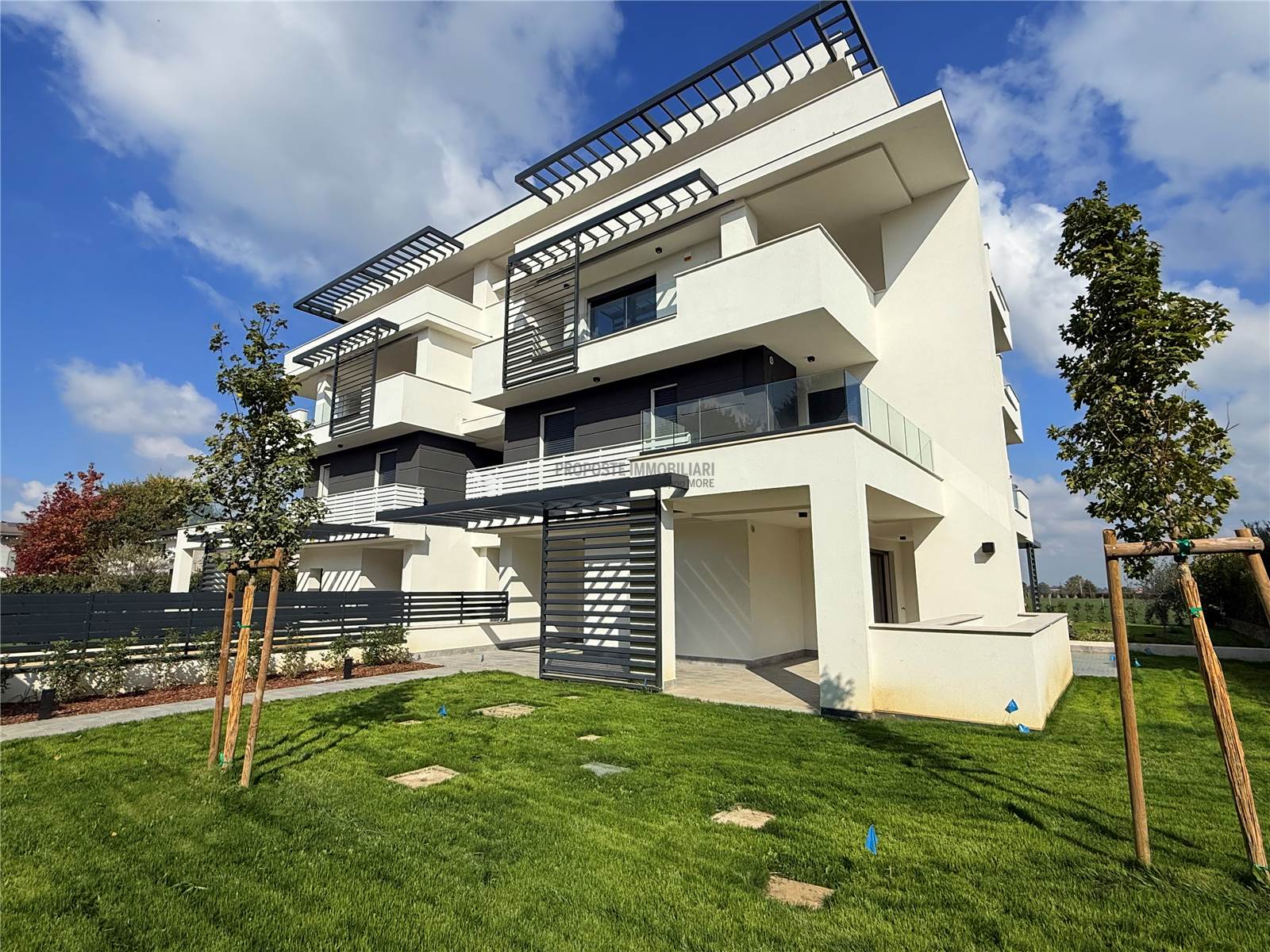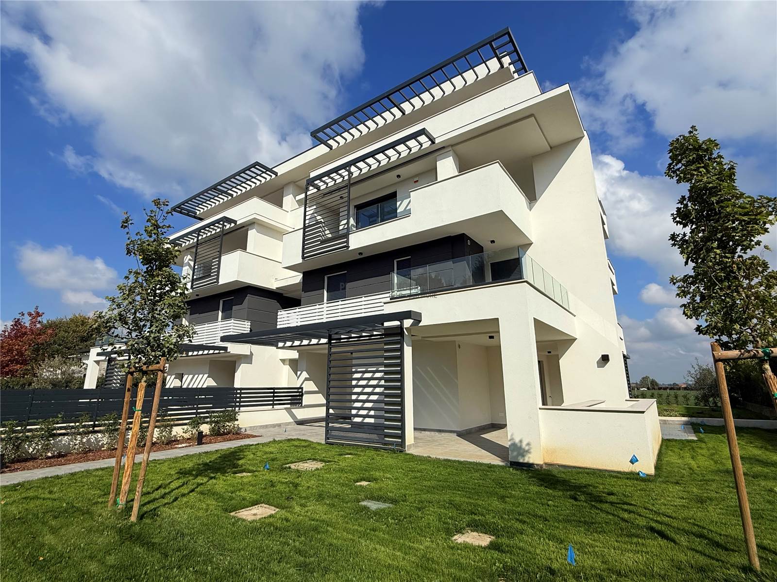 MO806D_04. Nostra esclusiva, MONTALE DI MODENA, in palazzina di nuovissima realizzazione, di sole 10 unità abitative in classe "A4", vendesi Appartamento su due livelli nr.04 di 204 mq. dotato di ingresso indipendente, giardino privato di 220 mq., autorimessa con accesso diretto alla proprietà e posto auto.