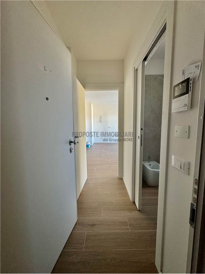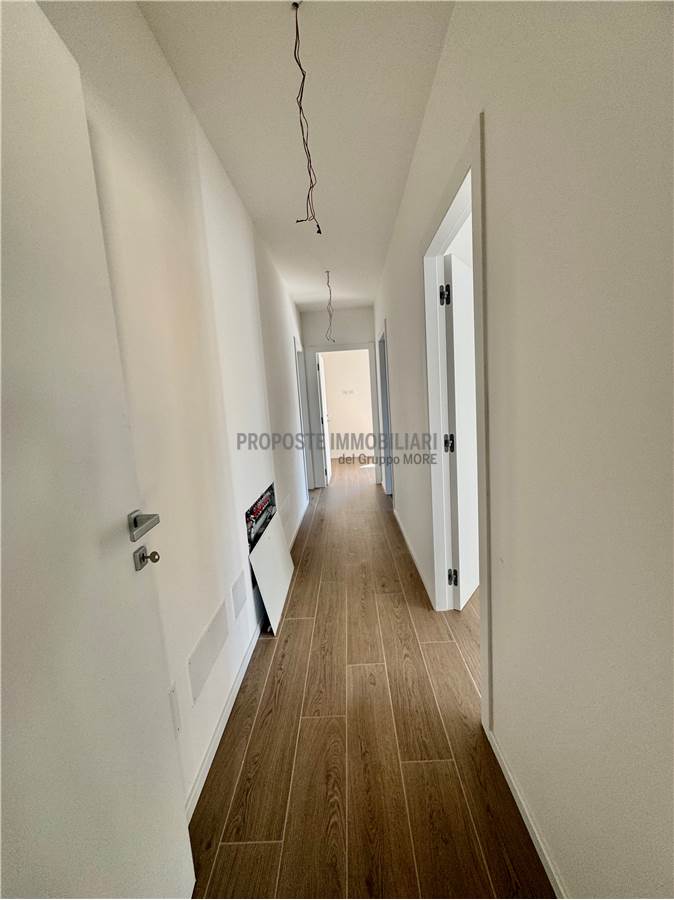 Appartamento così disposto: ingresso, soggiorno con cucina a vista, bagno, disimpegno notte, camera da letto matrimoniale, altre due camere da letto, bagno principale e tre balconi.