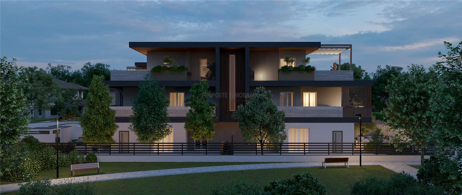 Prestigioso intervento immobiliare situato in zona verde a pochi passi dal Parco Rio dei Gamberi e a pochi minuti dal centro di Castelnuovo che consiste nella realizzazione di due edifici con 5 lussuosi appartamenti ciascuno.