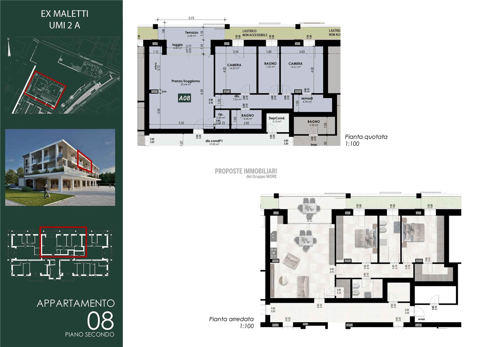 MO860D-UMI2A(A8). Nostra esclusiva, Casinalbo, Borgo San Luigi - Ex Salumificio Maletti, in angolo verde comodo a tutti i servizi prossima realizzazione di comparto residenziale (Classe Energetica A4 - NZEB) composto da nr. 9 palazzine e due ville indipendenti. All'interno della palazzina UMI2A, di dieci unità abitative, vendesi app.to "A8" di 136 mq. comm. ubicato al piano secondo e ultimo con ascensore.