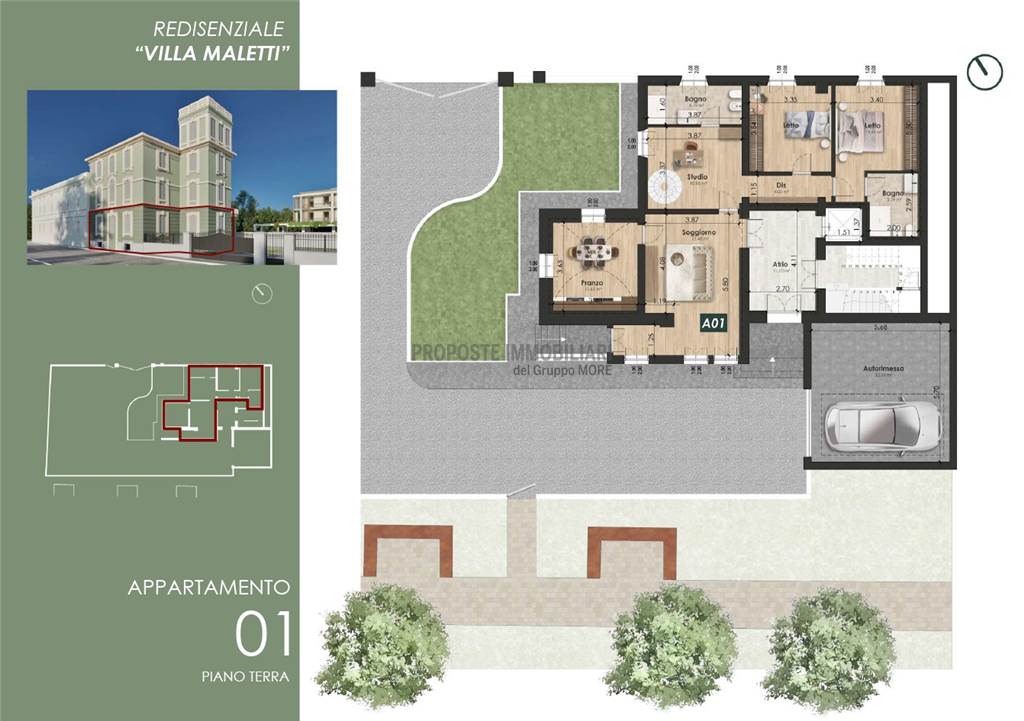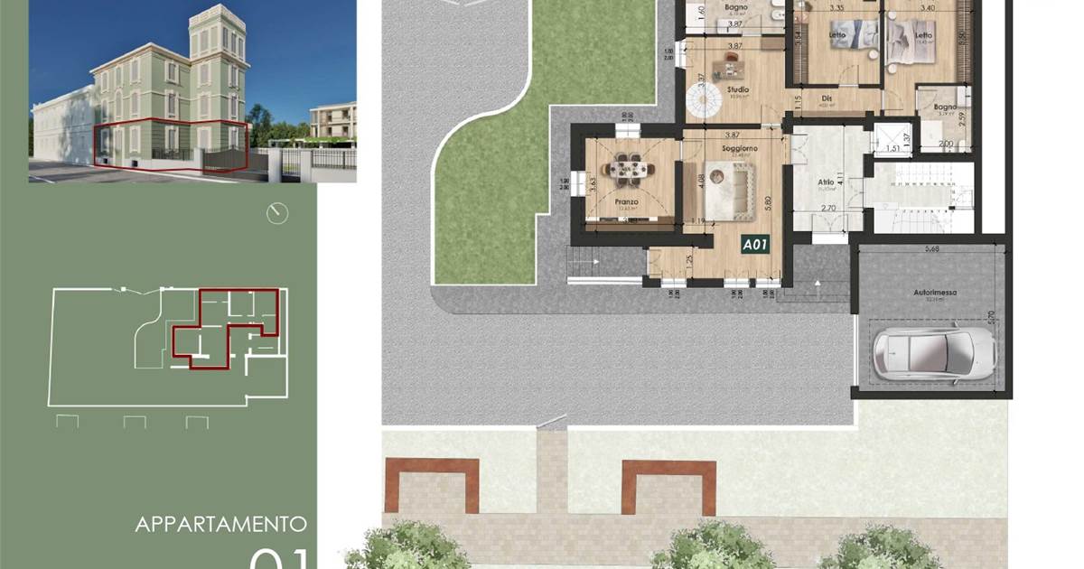 MO860E-VM1. Nostra esclusiva, Casinalbo, Borgo San Luigi - Ex Salumificio Maletti, in angolo verde comodo a tutti i servizi prossima realizzazione di comparto residenziale (Classe Energetica A4 - NZEB) composto da nr. 9 palazzine e due ville indipendenti. All'interno della storica Villa Maletti, (composta da sole tre unità abitative) in fase di integrale riqualificazione vendesi maisonette di 177 mq. comm.