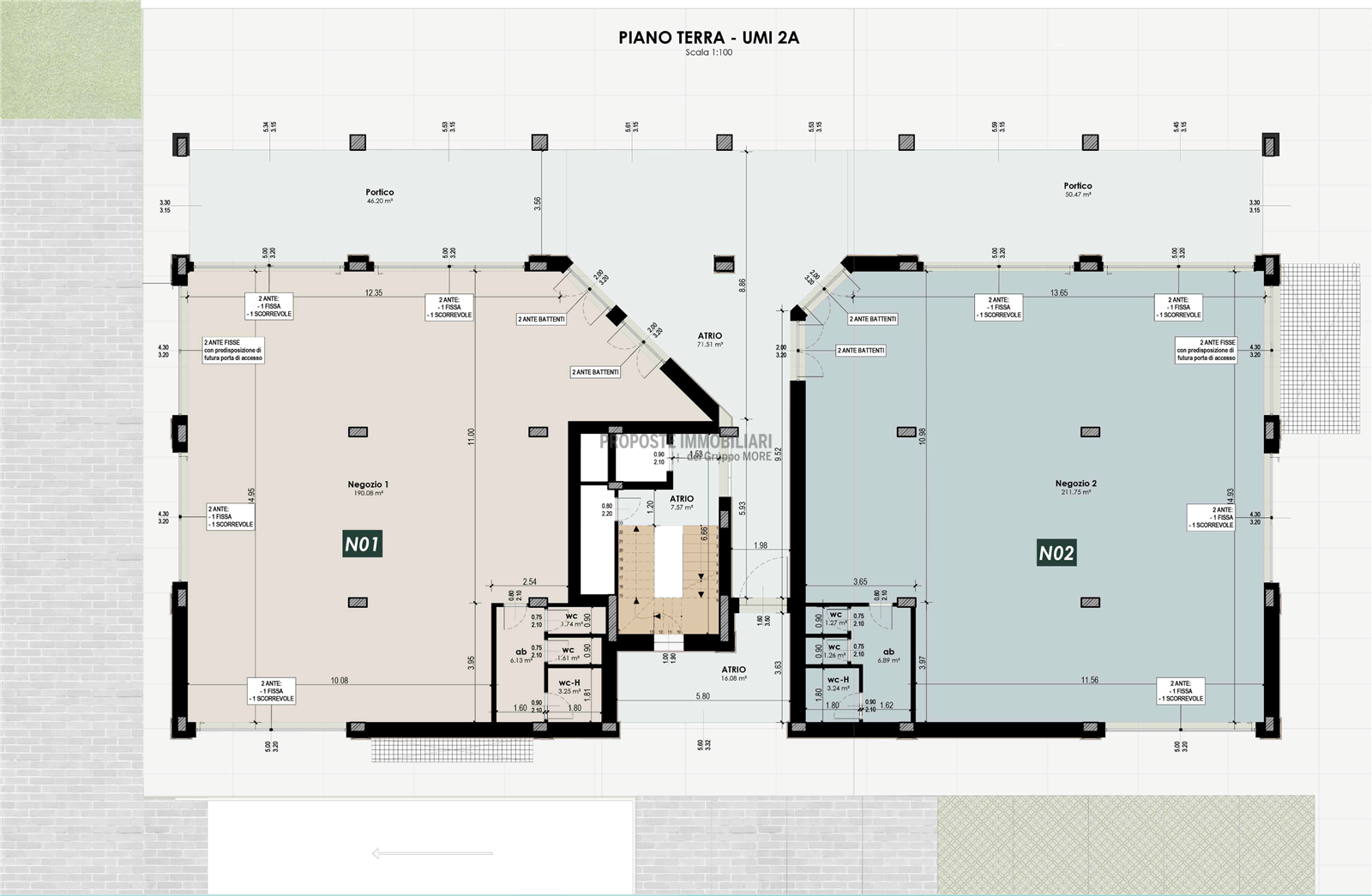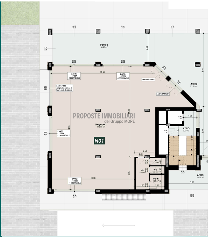 VD860-UMI2(N01). Nostra esclusiva, Casinalbo, Borgo San Luigi - Ex Salumificio Maletti, in angolo verde comodo a tutti i servizi prossima realizzazione di comparto residenziale (Classe Energetica A4 - NZEB) composto da nr. 9 palazzine e due ville indipendenti. Al piano terra della palazzina UMI2A vendesi negozio "N01" di 234 mq. con ampie vetrate e affaccio su piazza.