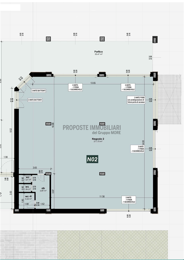 VD860-UMI2(N02). Nostra esclusiva, Casinalbo, Borgo San Luigi - Ex Salumificio Maletti, in angolo verde comodo a tutti i servizi prossima realizzazione di comparto residenziale (Classe Energetica A4 - NZEB) composto da nr. 9 palazzine e due ville indipendenti. Al piano terra della palazzina UMI2A vendesi negozio "N02" di 255 mq. con ampie vetrate e affaccio su piazza.