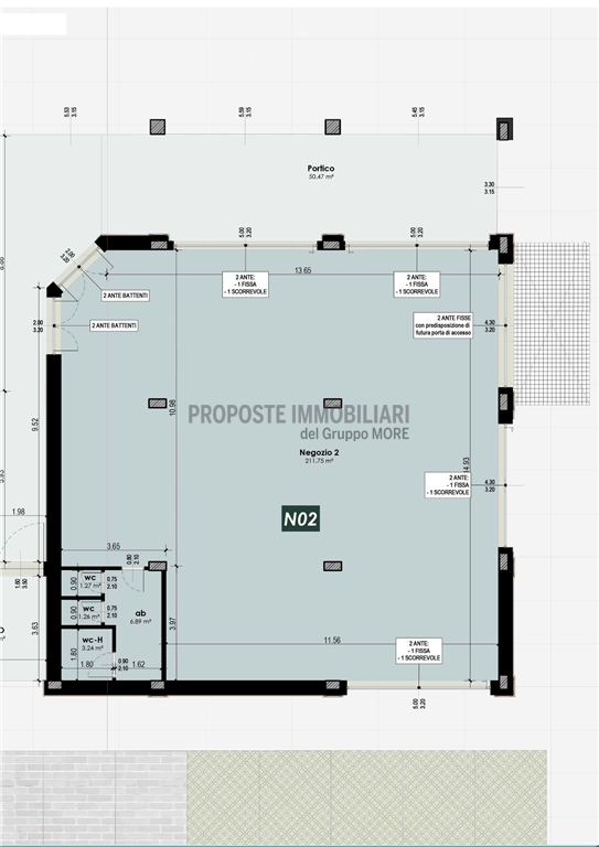 Negozio sviluppato in un unico ambiente, volendo suddivisibile, con bagno e numerose vetrine su piazza.