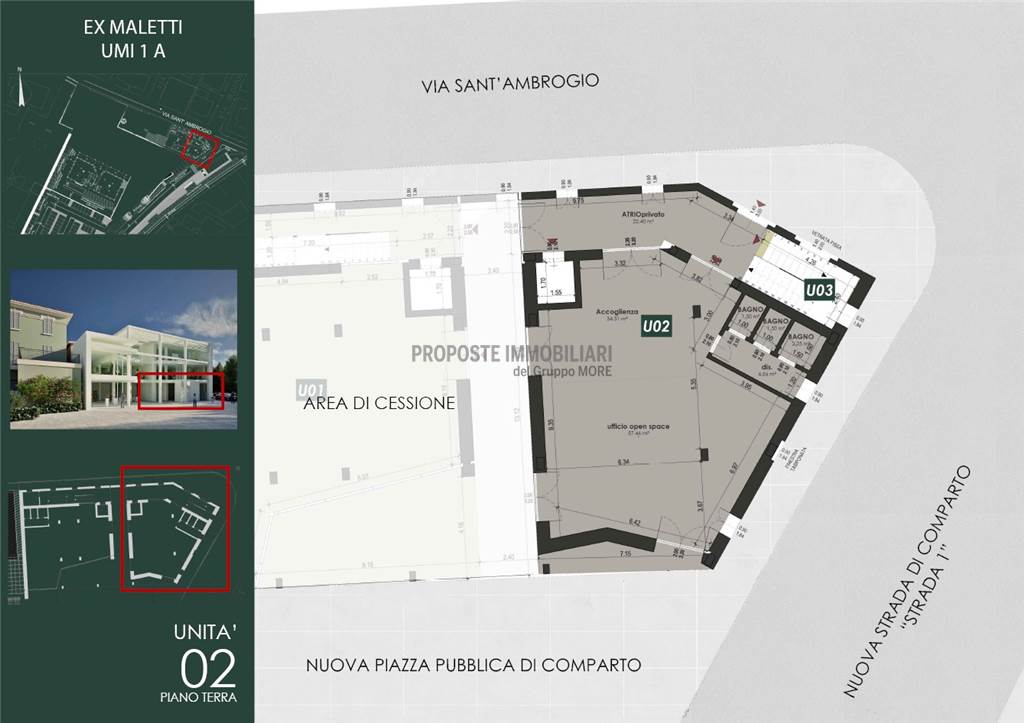 Al piano terra della palazzina UMI1A vendesi ufficio "U2" di 124 mq. dotato di ingresso indipendente.