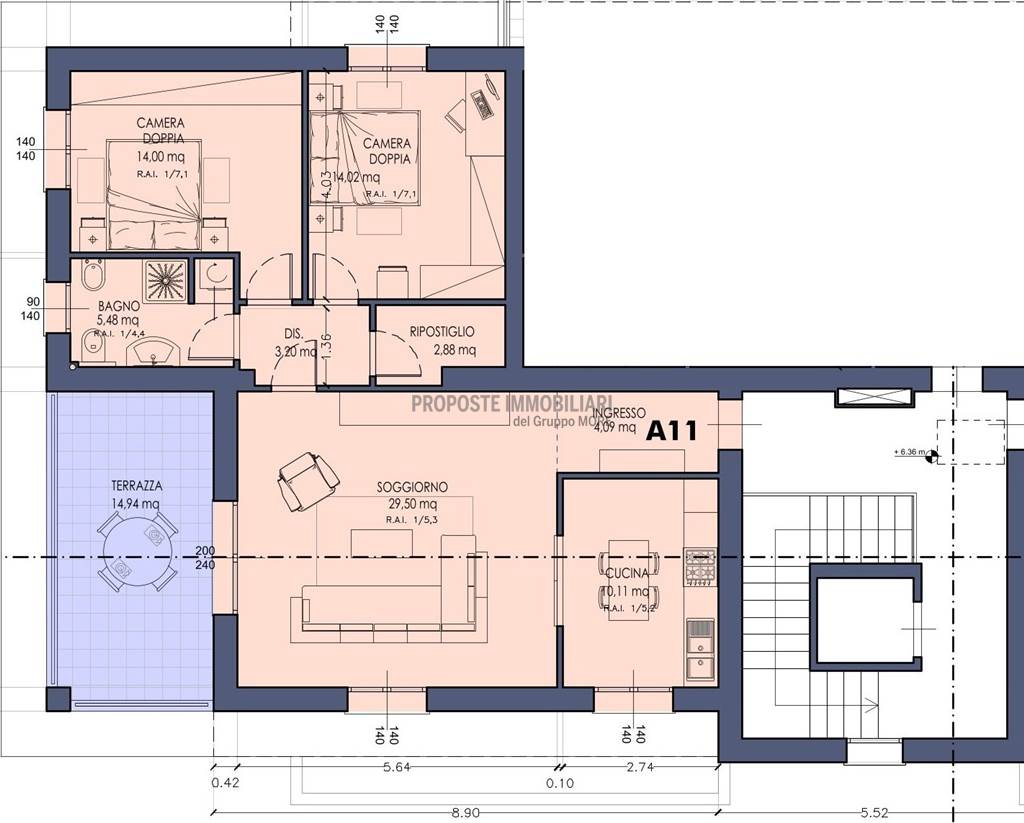 App.to così disposto: ingresso, soggiorno/pranzo, cucina, terrazza, disimpegno, due camere da letto, ripostiglio e bagno finestrato.