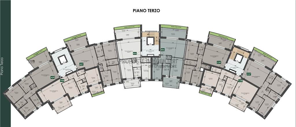 MO867D_C8 Nostra esclusiva, Via del Mercato, all'interno del nuovo comparto Ex Mercato Bestiame, nuova realizzazione di palazzina (Classe Energetica A4-NZEB) vendesi attico "C8" al piano terzo ed ultimo con ascensore, di 91 mq., due logge coperte e giardino pensile.