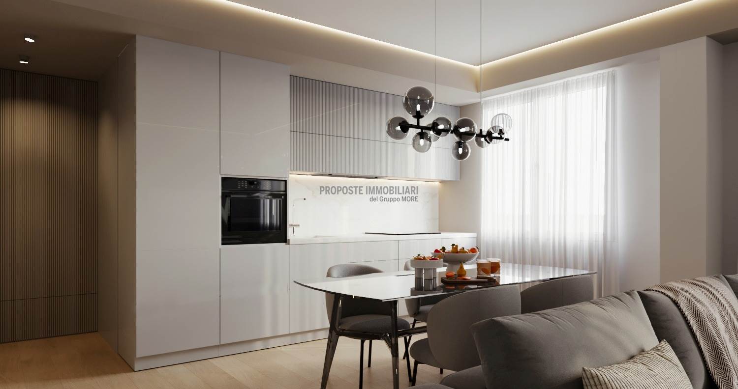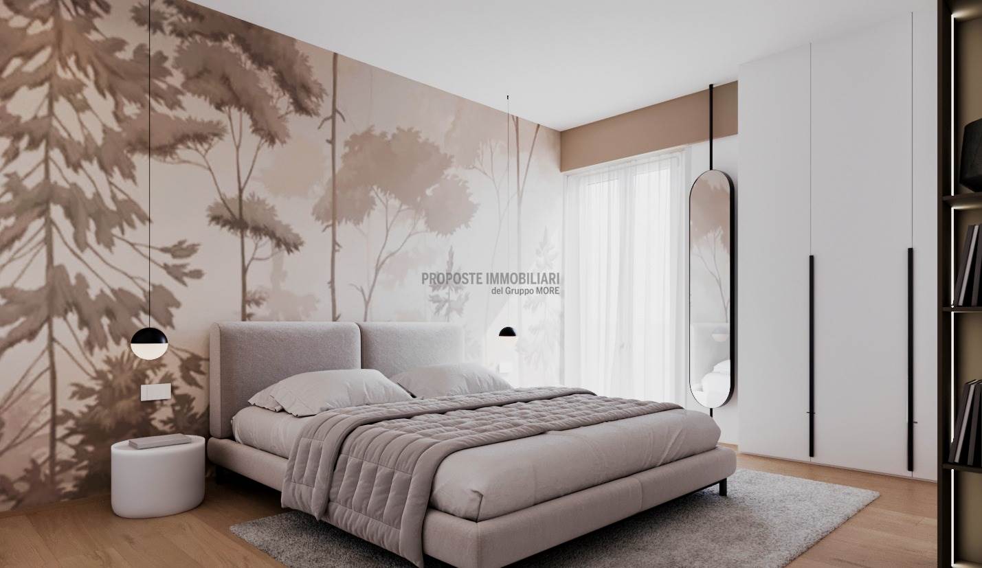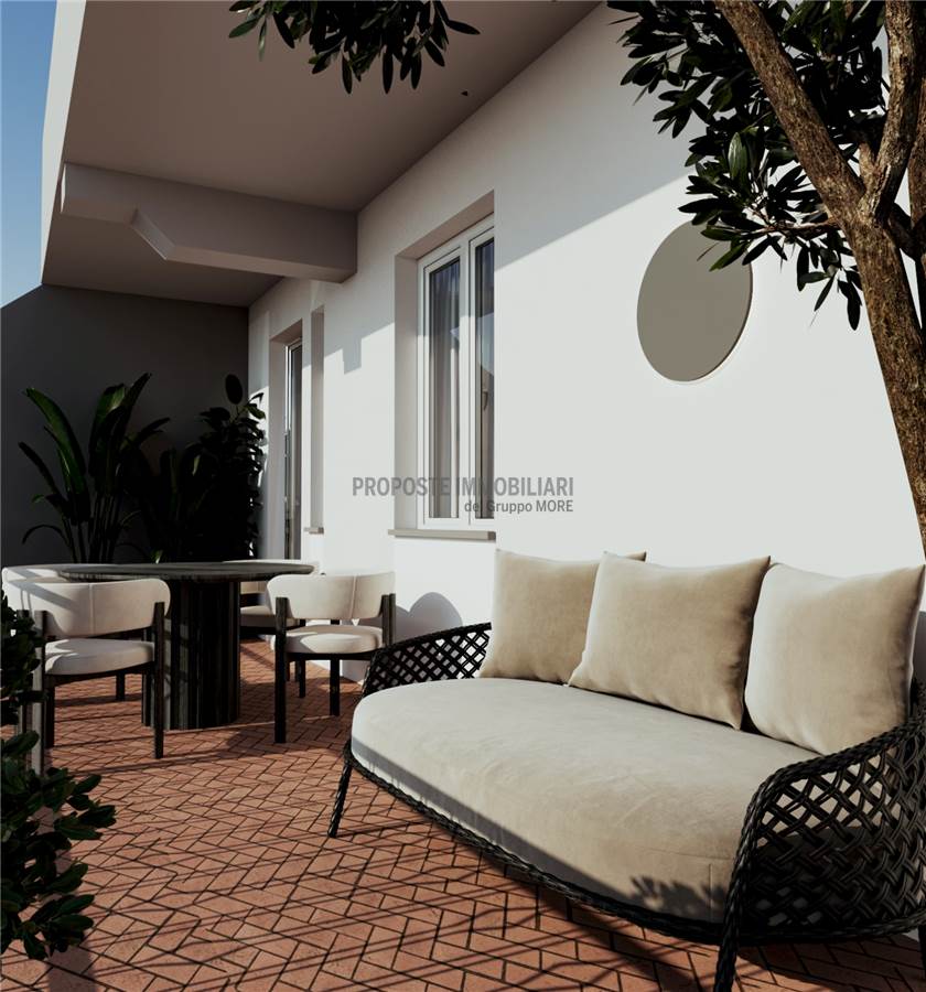 L'appartamento situato al primo piano è così composto; ingresso, salone con cucina a vista, due bagni, tre camere (due matrimoniali) e terrazzino. Completa la proprietà un box auto al piano seminterrato. L'appartamento ha un ingresso indipendente, separato da quello principale del condominio che si compone di soli tre appartamenti.