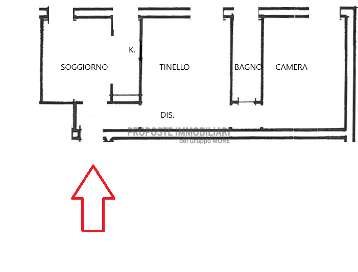App.to così disposto: ingresso, tinello con cucinotto, soggiorno, un bagno e un'ampia camera matrimoniale. A completamento della proprietà una cantina al piano terra.