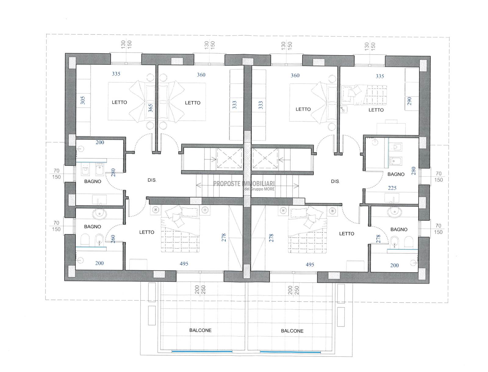 P.1. Tre camere matrimoniali, due bagni e balcone.