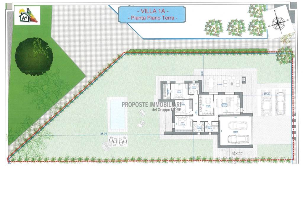 La villa, inserita all'interno di un elegante complesso residenziale, gode di un ampio giardino privato ed è disposta su un unico piano.