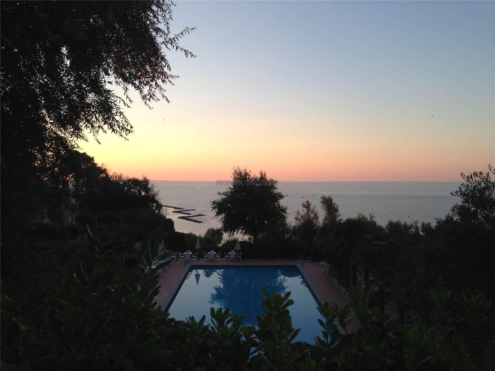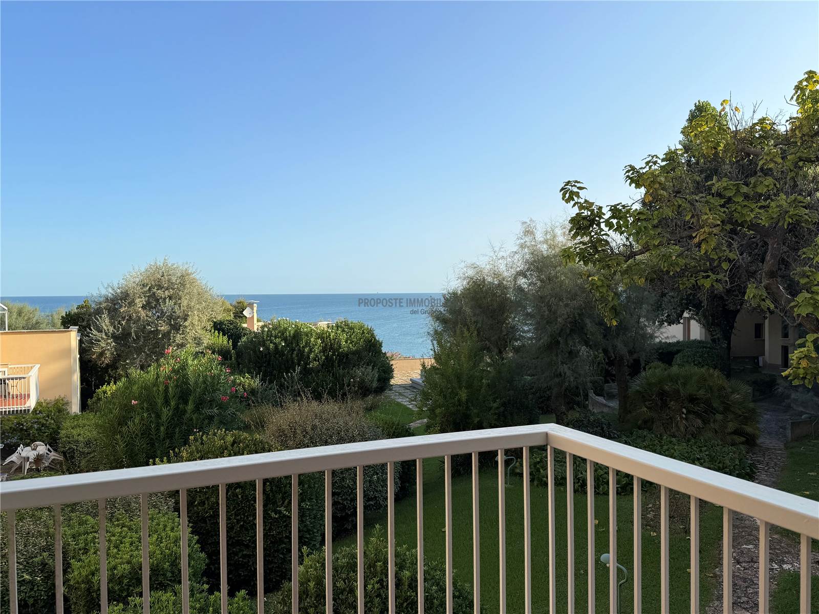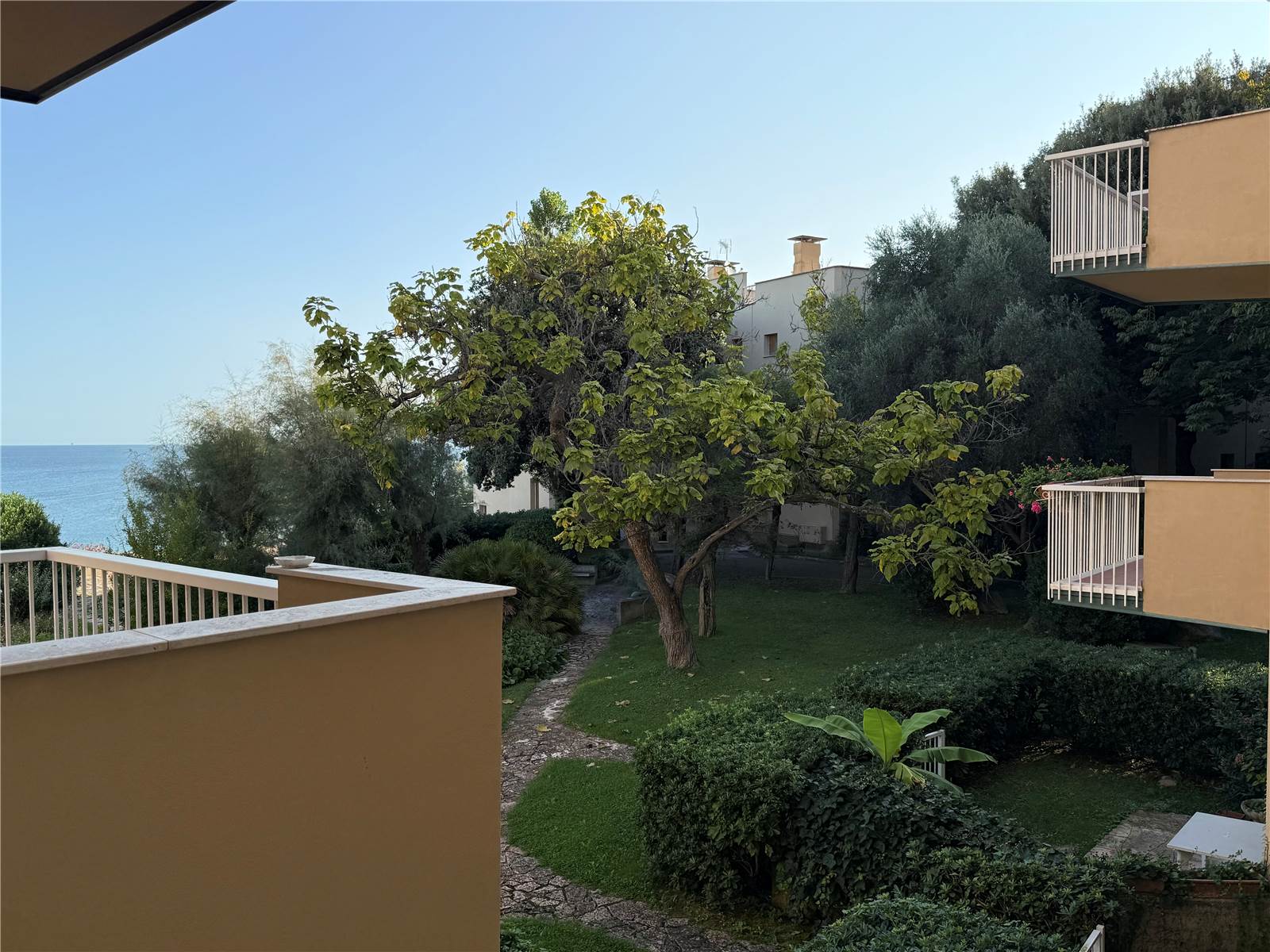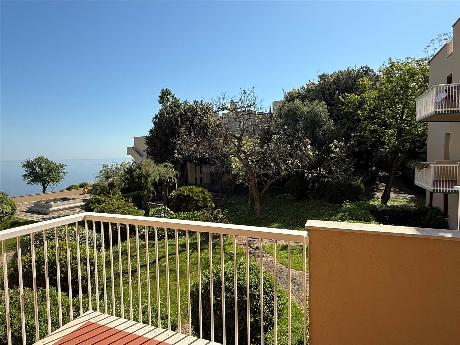 Appartamento posto al piano primo con ascensore composto da soggiorno con terrazzino abitabile con fantastica vista sul curatissimo giardino condominiale e con libera vista sul MARE, cucina, tre camere e un bagno. Alloggio completo di ampia cantina e garage. Impianti autonomi.