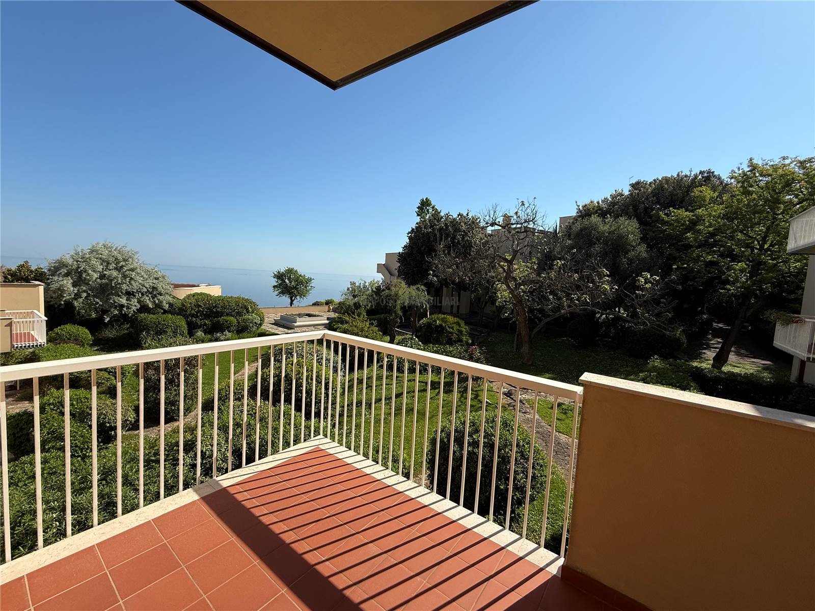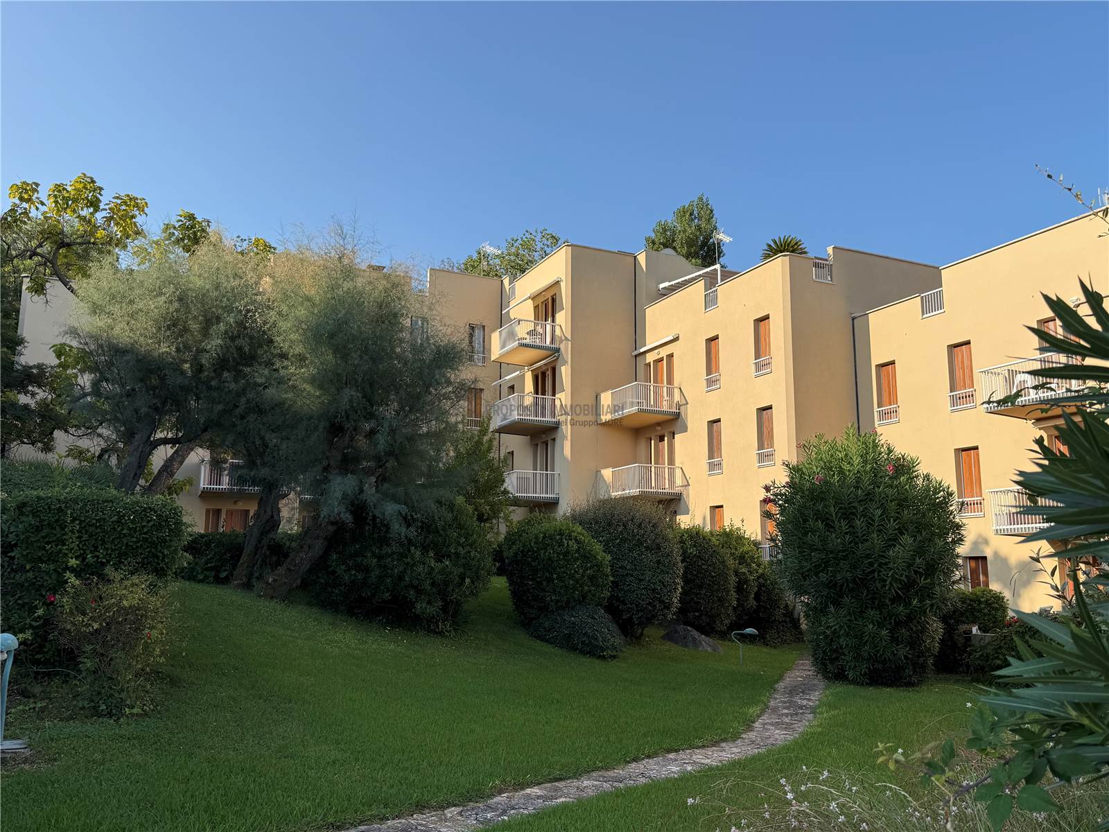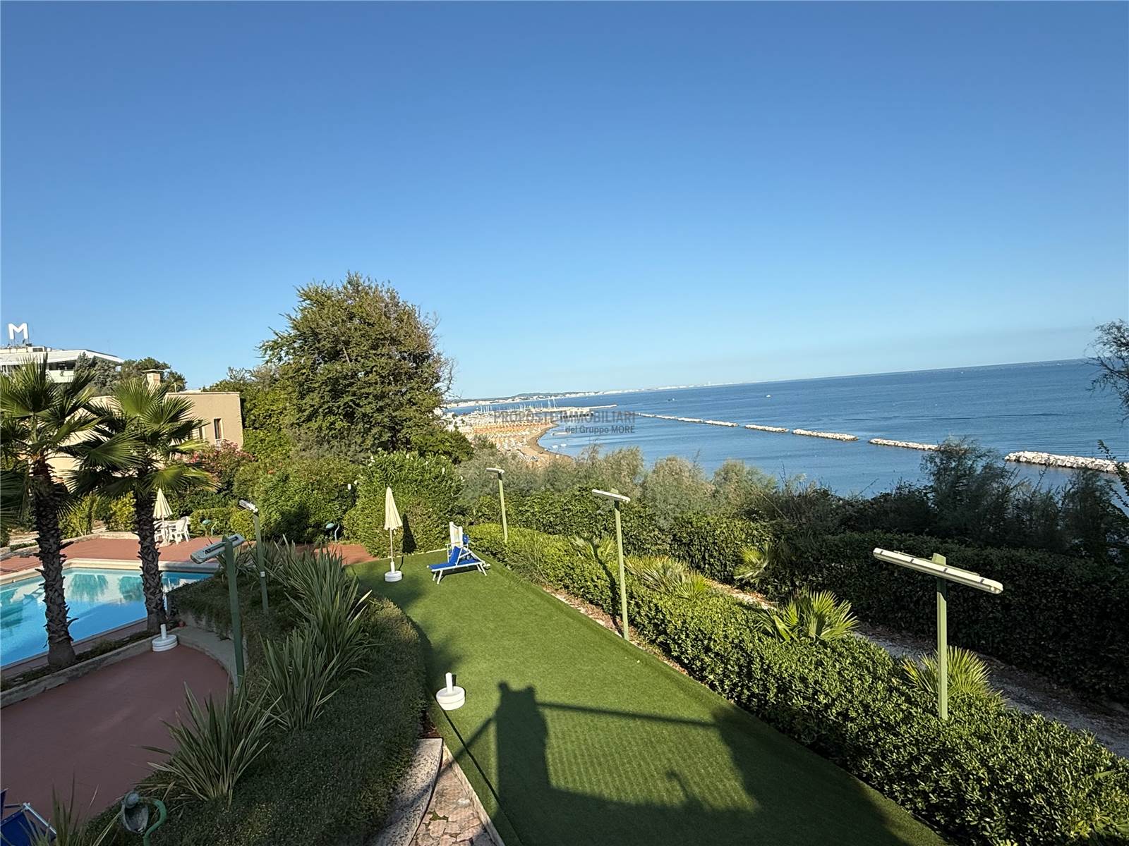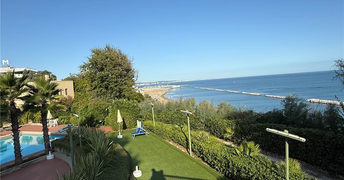 Appartamento posto al piano primo con ascensore composto da soggiorno con terrazzino abitabile con fantastica vista sul curatissimo giardino condominiale e con libera vista sul MARE, cucina, tre camere e un bagno. Alloggio completo di ampia cantina e garage. Impianti autonomi.