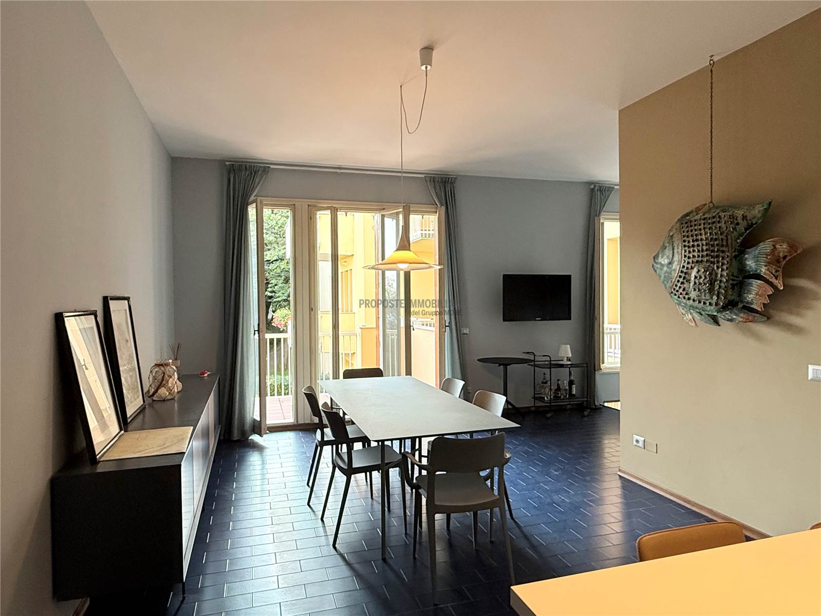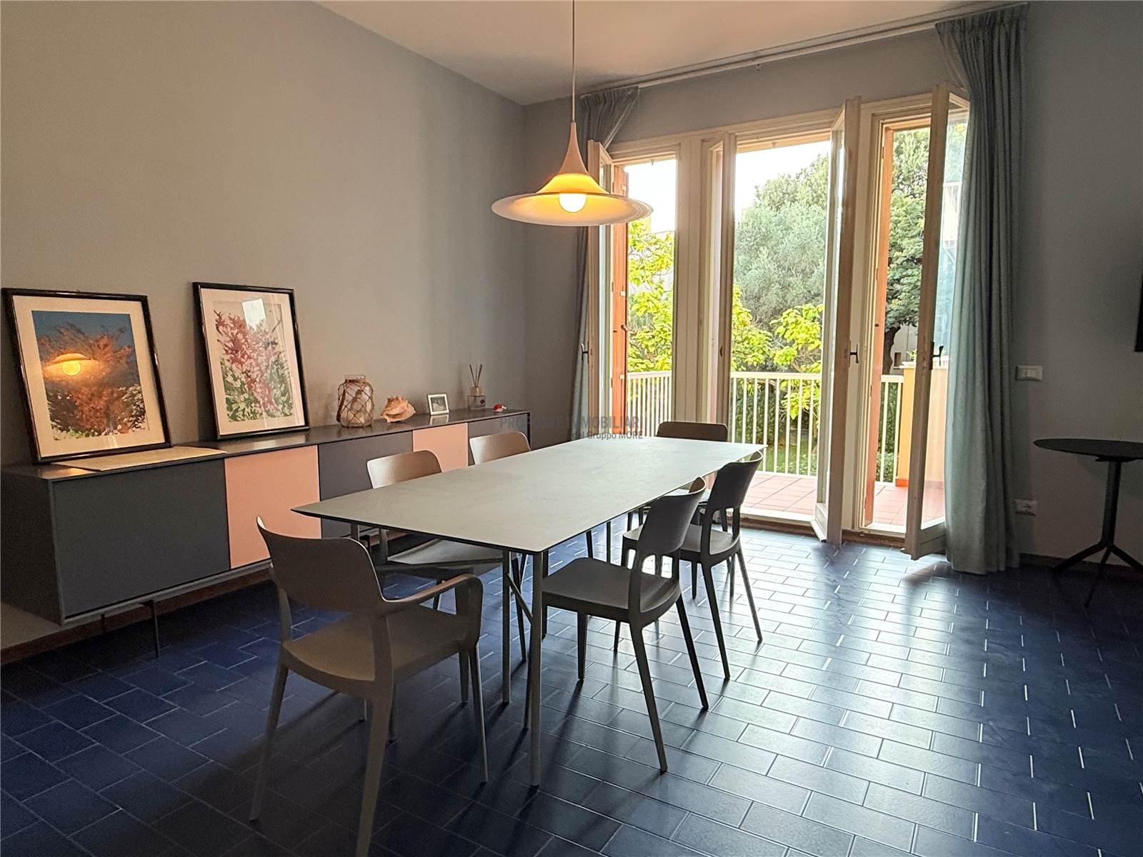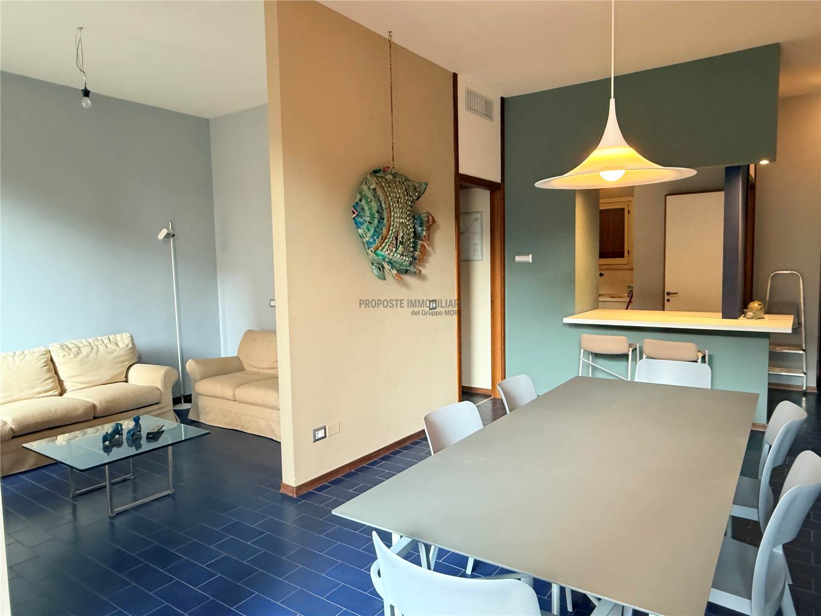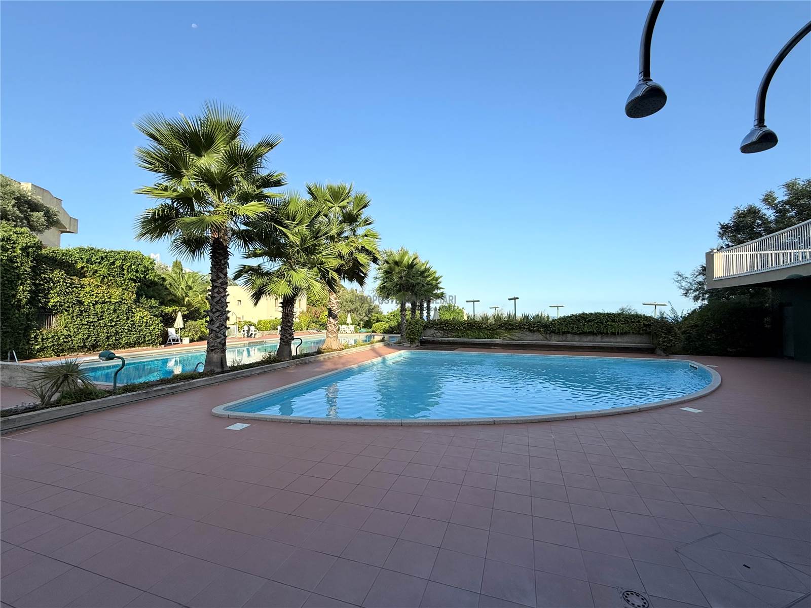 Appartamento posto al piano primo con ascensore composto da soggiorno con terrazzino abitabile con fantastica vista sul curatissimo giardino condominiale e con libera vista sul MARE, cucina, tre camere e un bagno. Alloggio completo di ampia cantina e garage. Impianti autonomi.