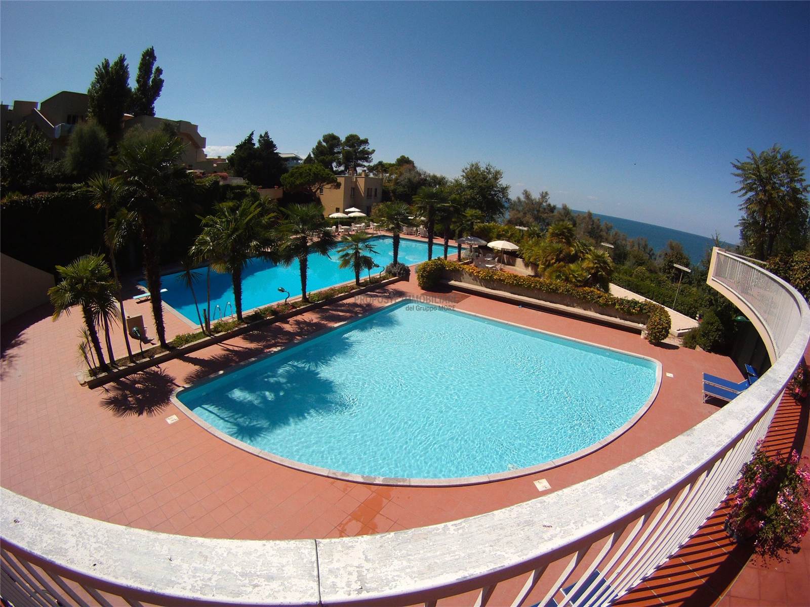 Il complesso residenziale, progettato e realizzato negli anni settanta da un noto studio di architettura milanese per un unico proprietario (nel corso degl' anni è stato manutenzionato e ristrutturato), si trova nella parte alta di Gabicce proprio all'inizio del Parco San Bartolo ed è collegato alla spiaggia da un ascensore privato, gode di fantastici affacci sulle parti comuni adibite a giardino e sulle due piscine (la piccola dei bimbi e la grande di 25 mt per gli adulti), una coppia di custodi dedicano tutte le loro energie per tenere in ordine giardino e tutti gli spazi condominiali. Varie foto delle zone condominiali descrivono l'unicità dell'intervento edilizio.