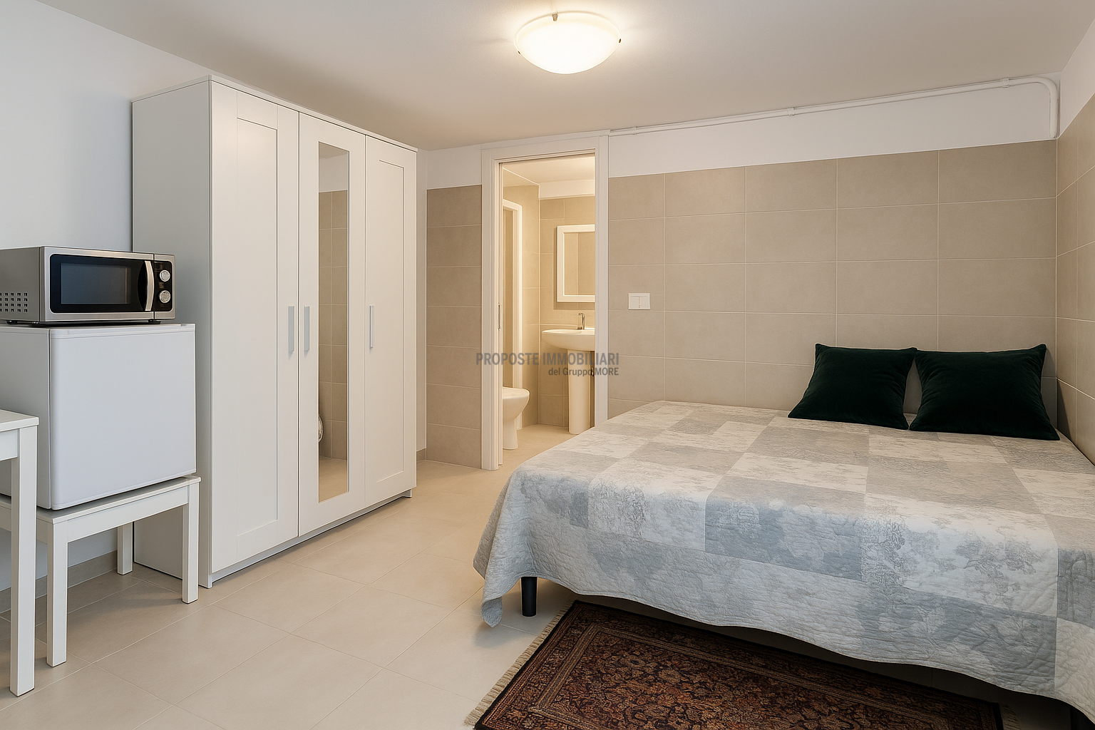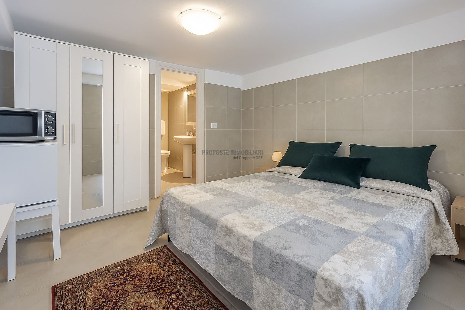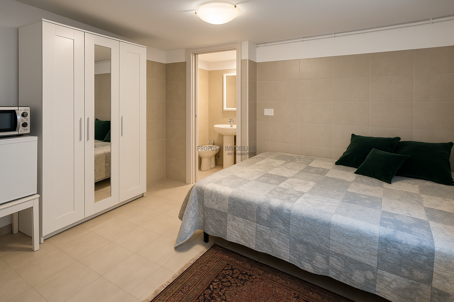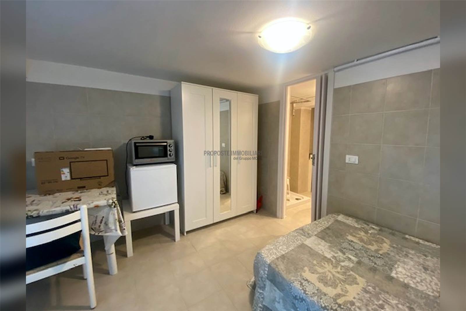 Il monolocale, costruito nel 1980 e in buono stato, è dotato di aria condizionata e riscaldamento a pompa di calore, garantendo comfort in ogni stagione. Situato al piano terra con ascensore, l'appartamento è facilmente accessibile. La cucina è vuota, offrendo la possibilità di personalizzarla secondo i propri gusti.