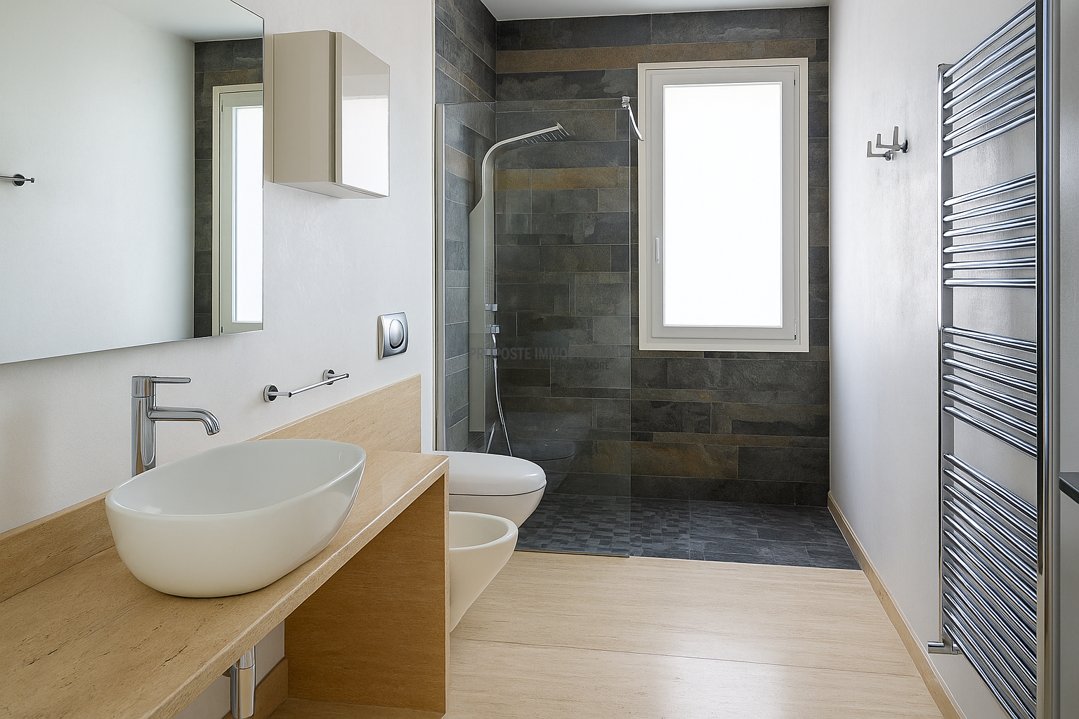 L’appartamento è dotato di riscaldamento autonomo, aria condizionata e spese condominiali contenute (circa 1.000 €/anno).