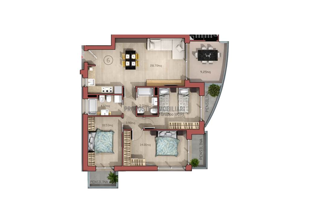 * Punti luce tipo faretti incassati sotto i balconi e le pensiline;
