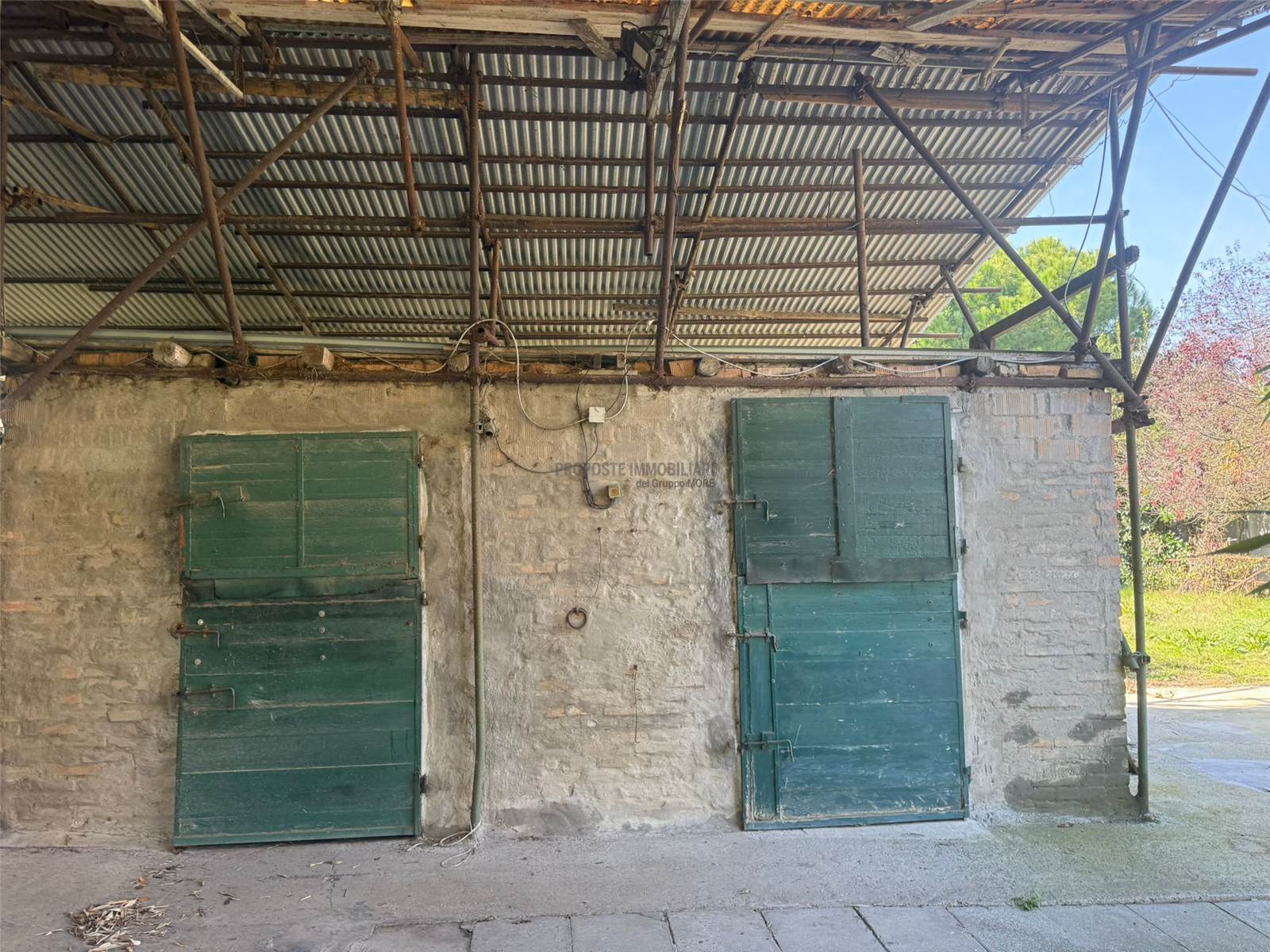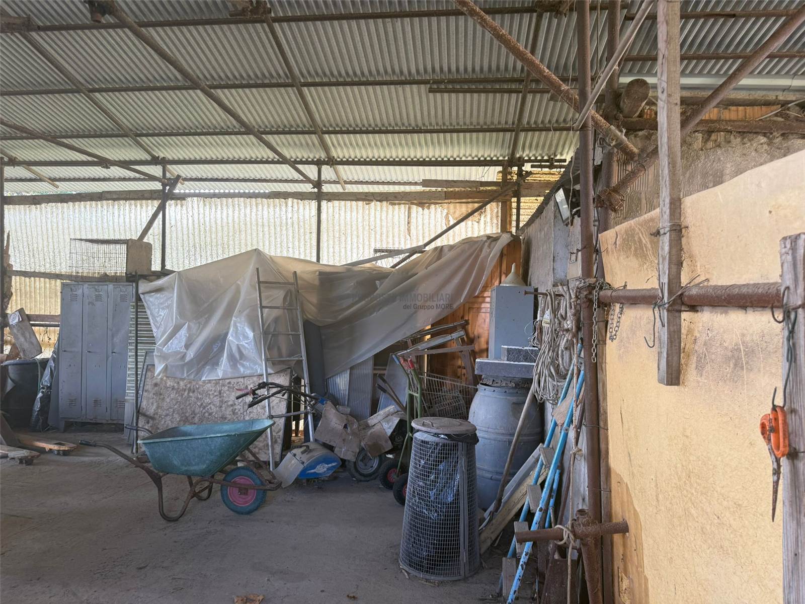 La proprietà comprende un garage, un fienile e due stalle per animali, oltre alla casa principale disposta su un unico livello con sottotetto grezzo.