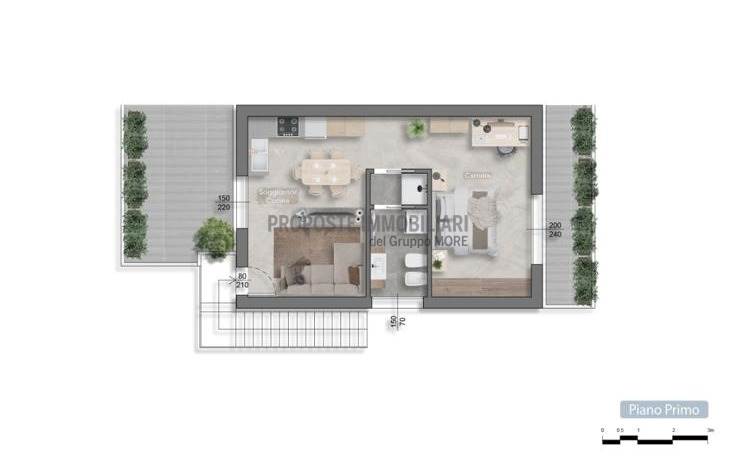 Tipologia A : appartamento con ingresso indipendente posto al piano primo , ingresso in sala angolo cottura, camera e bagno a 700 mt dal mare