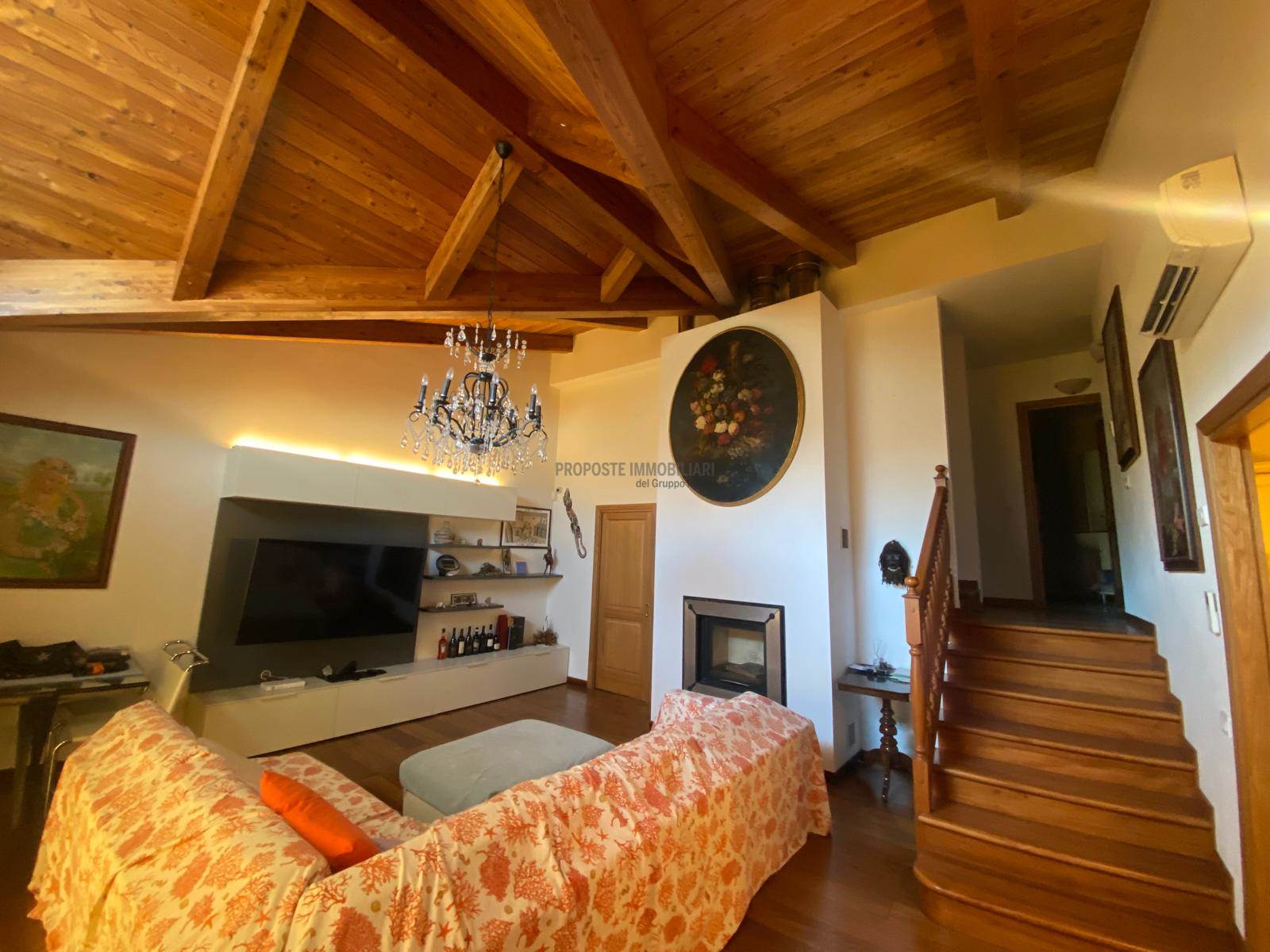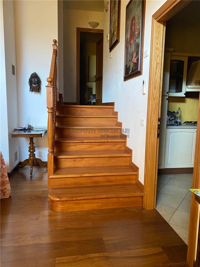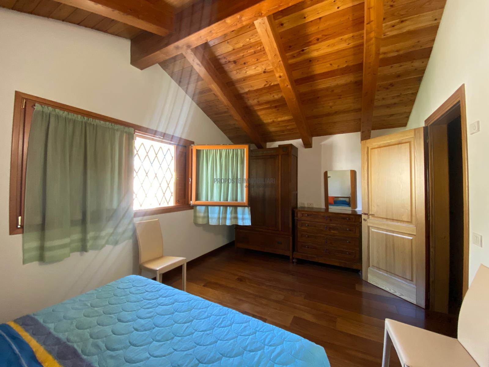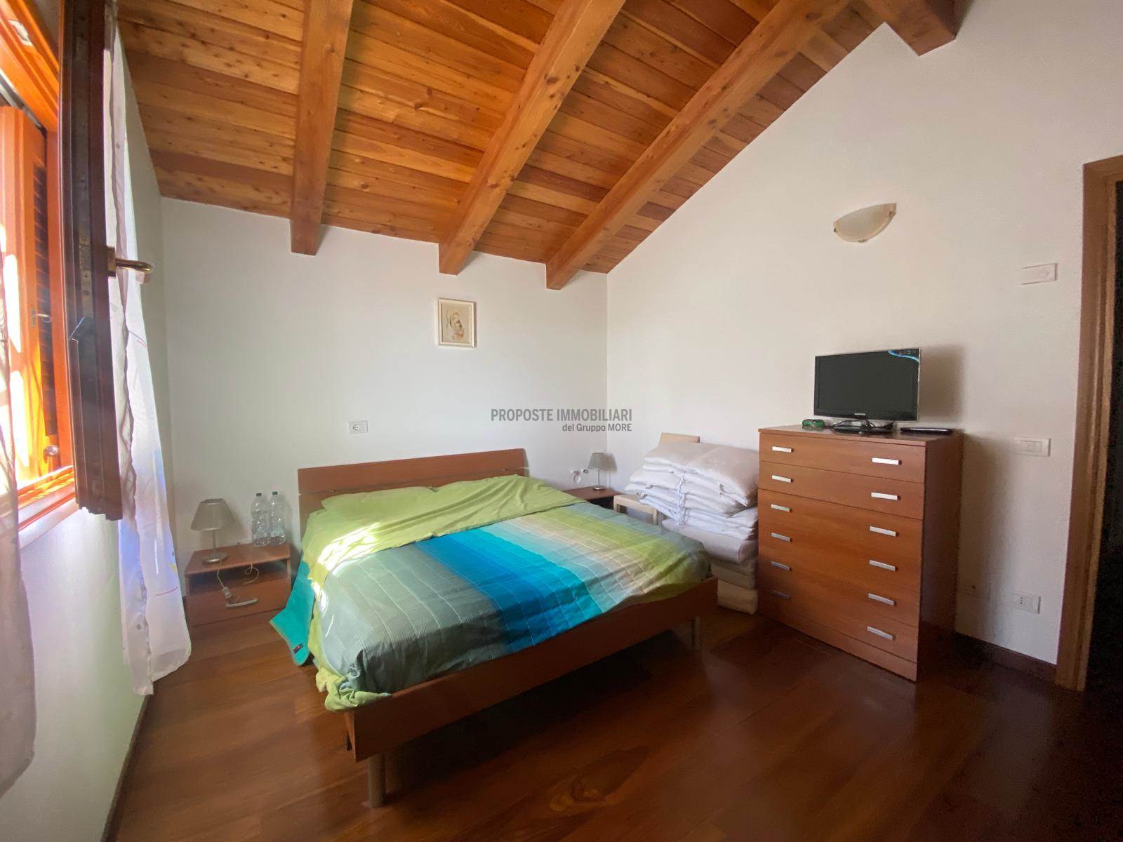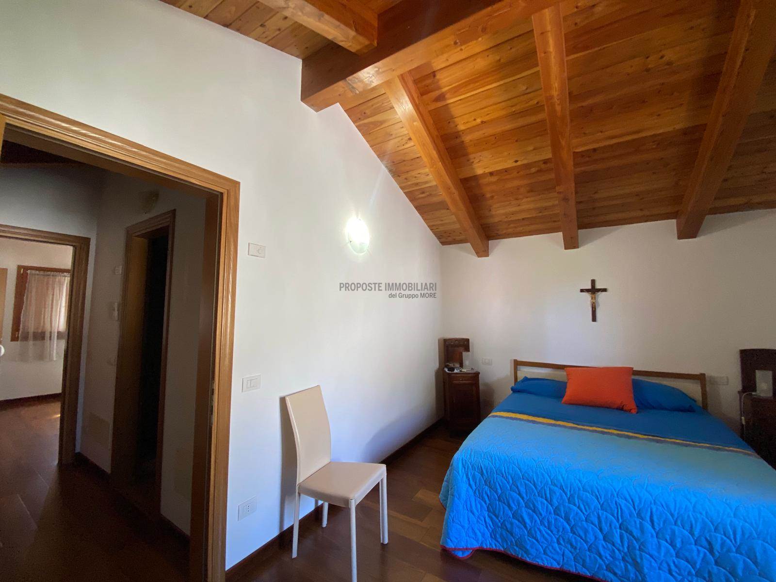 piano seminterrato taverna di 65 mq con predisposizione cucina e bagno, garage per 2 auto e lavanderia, piano terra troviamo un salone con camino, cucina abitabile, 2 camere e 2 bagni con tetto in legno a vista, scala interna per accedere al piano superiore con 2 camere e bagno finestrato .