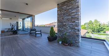 VD5039 Modena, Zona Buon Pastore, in contesto di lusso di recente costruzione, vendesi splendido attico al piano terzo con ascensore, costituito da: ingresso in ampio soggiorno con affaccio su terrazzo loggiato di 64 mq., vano tecnico, cucina abitabile, dis. notte, tre camere da letto (di cui una dotata di balcone), camera padronale con annesso bagno e dotata di balcone, bagno e ripostiglio. Completano l'unità un doppio garage di 29 mq. al piano terra e due posti auto in area cortiliva recintata al piano terra.